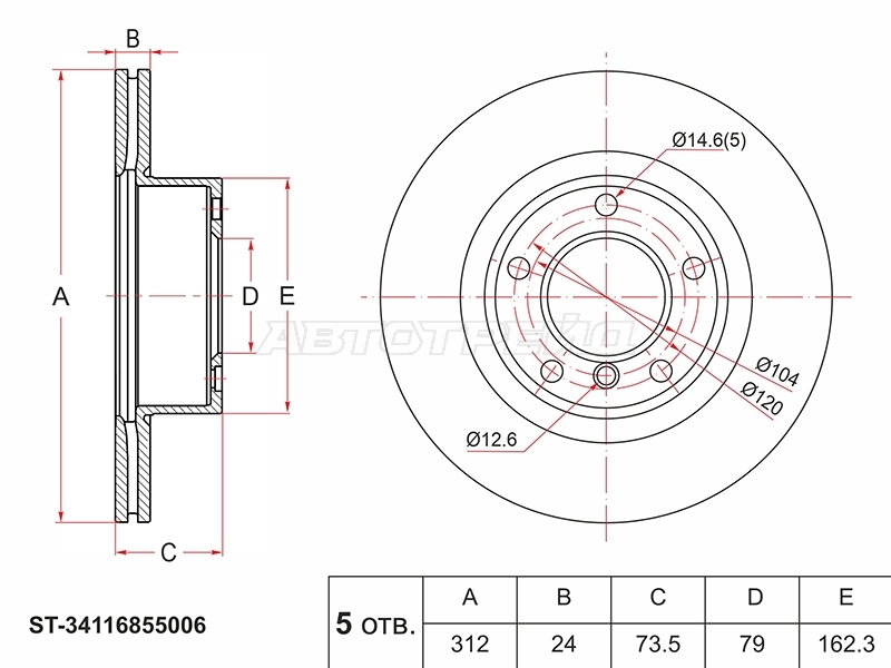 Диск тормозной (Спереди) BMW 1-Series 11-19 / 3-Series 05-19