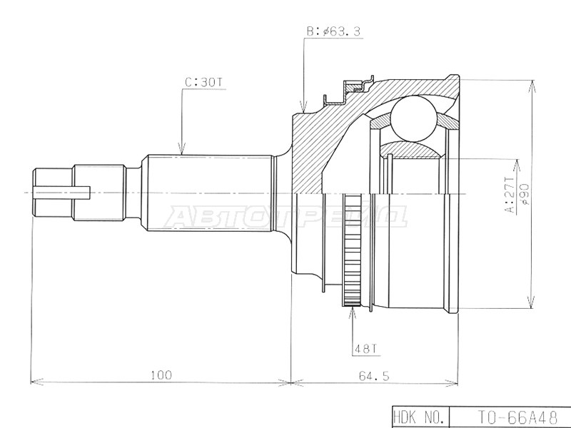 Шрус (Спереди/ Наруж) Lexus RX 97-03 / Toyota Harrier 97-03