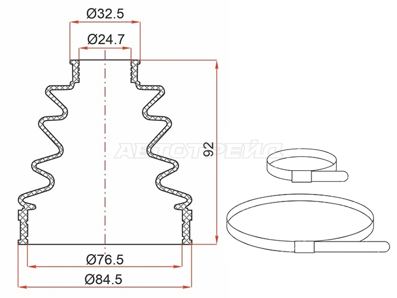 Пыльник шруса наружный VOLVO S60/S80 98-06/V70 00-07/VAG A4 94-00/A6 97-05 (2 хомута.резина)