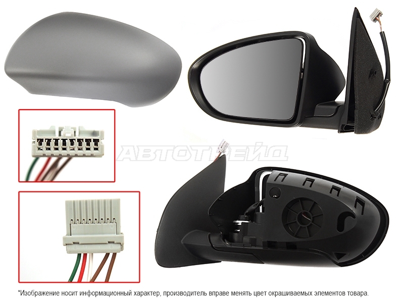 Зеркало Nissan Qashqai 06-13 / Dualis 07-14 (Справа/ Обогрев/ Регулировка/ Складывание/ 7 контактов)