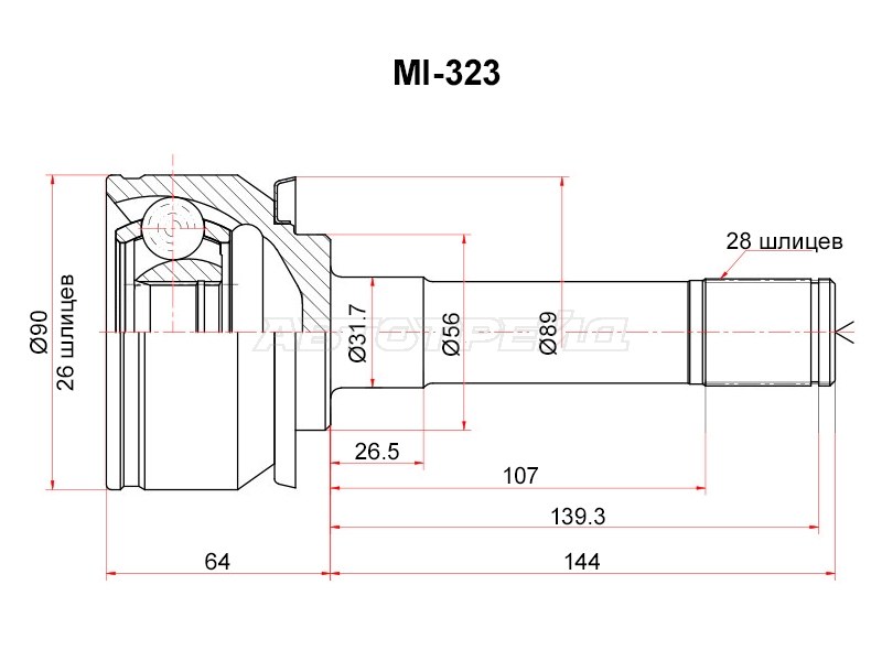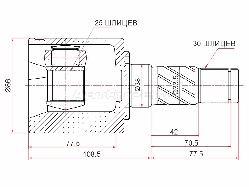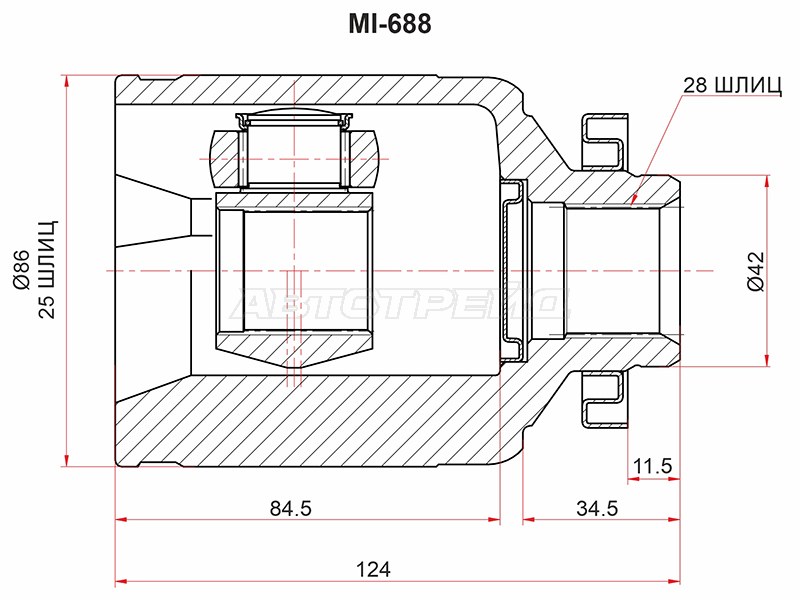 Шрус (Спереди/ Слева/ Внутр) Kia Sorento 02-09 / Bongo 04-19
