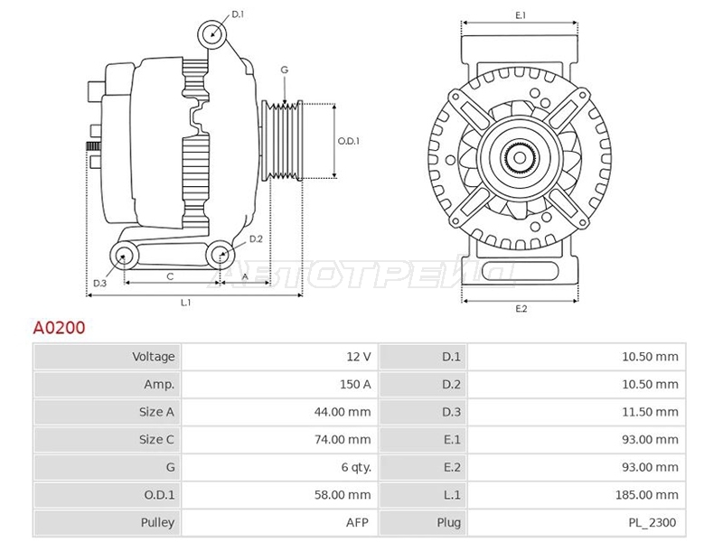 Генератор FORD TRANSIT/PEUGEOT BOXER/FIAT DUCATO 06- 14V 150A дизель (EURO 4)