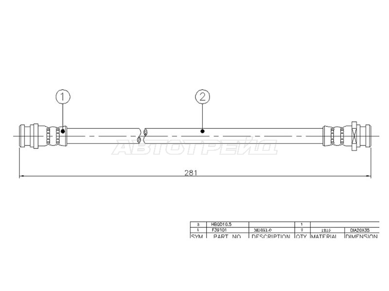 Шланг тормозной перед (Таиланд) MITSUBISHI OUTLANDER 01-08 LH=RH