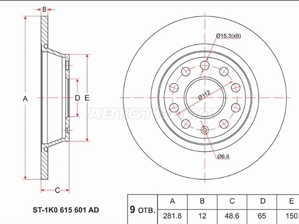 Диск тормозной (Зад) Audi A3 03-13 / Q3 11-19