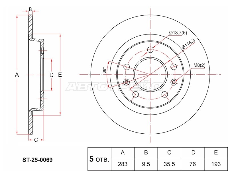 Диск тормозной (Сзади) Changan CS55 17-24 / CS55 PLUS 21-